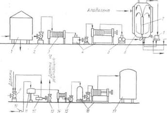 Рис. 51. Установка для разведения чистых культур дрожжей Свесского насосного завода.