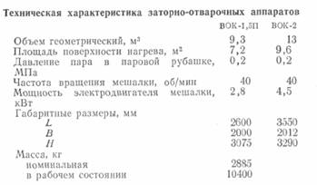 Аппарат типа ВОК (рис. 39) имеет прямоугольную форму. К корпусу 3 привариваются наклонное днище 4 и выпуклая крышка 2, на которой смонтирована пароотводящая труба 1. Крышка снабжена люком для осмотра и ремонта аппарата. Аппарат оснащен мешалкой шнекового типа с боковым приводом 5, обогревательной рубашкой, выполненной из уголков, приваренных к днищу, загрузочным и разгрузочным устройствами, арматурой для подвода воды, пара и т. д.