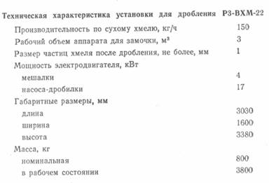 В целях снижения расхода шишкового хмеля КБ НПО ПБП разработана конструкция установки для увлажнения и дробления хмеля.
