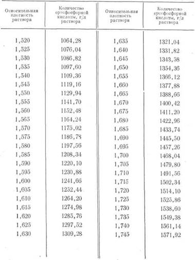 Величина А устанавливается по приведенному в табл. 8 соотношению между относительной плотностью растворов и содержанием ортофосфорной кислоты в растворе.